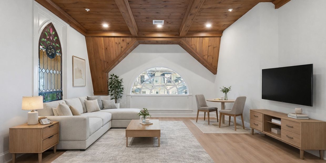 Spacious and full of character, this stunning two-bedroom, one-bath apartment blends timeless architectural details with thoughtful design. The home features beautiful arched windows that flood the space with natural light, complemented by elegant stained glass accents that add a unique sense of charm and history. High-end wood paneling across the ceilings creates a warm, refined atmosphere throughout the apartment. Both bedrooms include custom built-ins, offering stylish and practical storage while maximizing space. With its generous layout and distinctive craftsmanship, this apartment offers a rare combination of comfort, functionality, and classic elegance. Amazing location right off Main street. Off street parking included. Laundry on site. First and last month's rent are due on signing. Good credit is required. $2200/m.